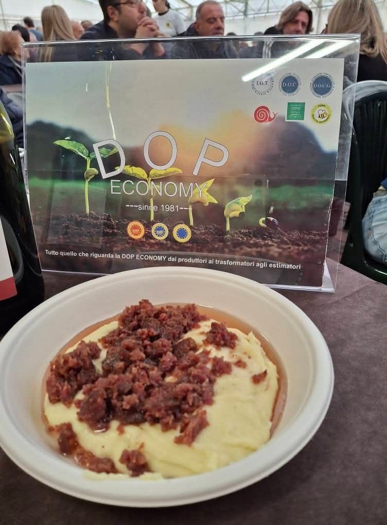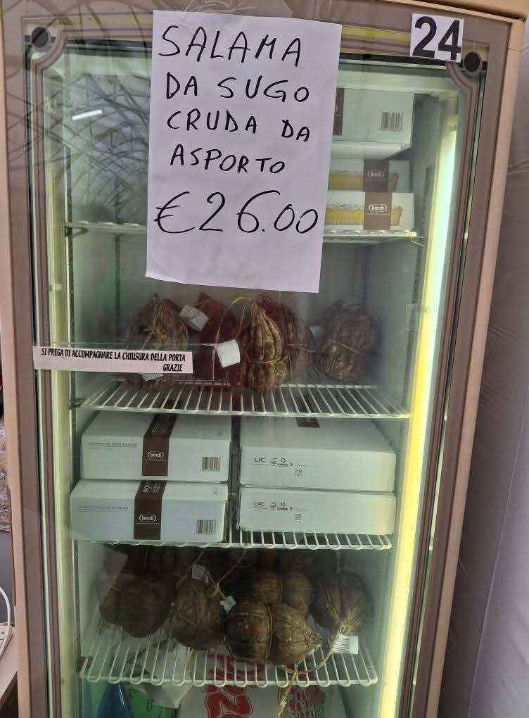 A VISTA D'OCCHIO dalle parti di Romeo e Giulietta ! Ulteriore PRESIDIO SLOW FOOD che incrementa il patrimonio di DOP ECONOMY , ormai giunto ad oltre 100 tra luoghi di produzione DOP , IGP , STG e presidi slow food . Questa volta a Nogara , una bella cittadina nella quale ho rapporti di lavoro da oltre 9 anni e che conserva la tradizione di questo umile e antico salume che utilizza le parti nobili del maiale nell’impasto, (spalla, lombo, culaccia, prosciutto e grasso di pancetta) e alla speziatura con aglio macerato in vino bianco. Molto saporito direi , accoglienza e azienda eccellente , assaggiato sul posto e infine arrivato nella nostra sede sia sotto lardo che senza , per le foto di rito sul pianoforte delle eccellenze !