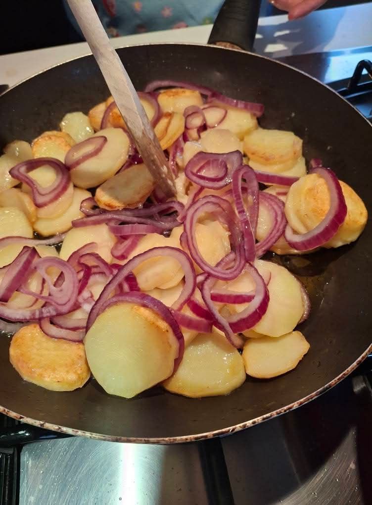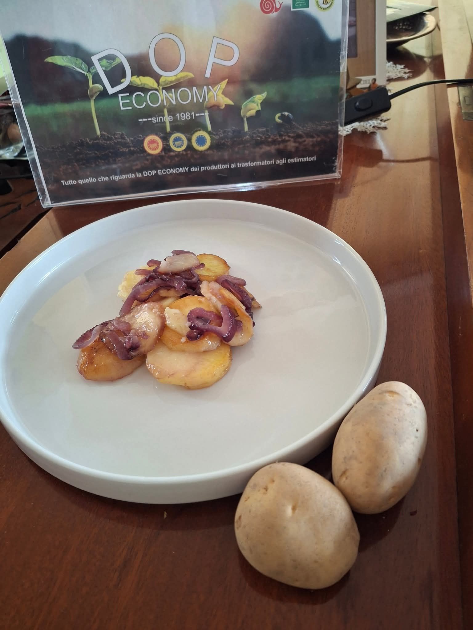 E se proprio devono essere PATATE 'MPACCHJUSE, lo devono essere alla DOP MANIERA !! Questo e' uno dei piatti piu' iconici della cucina cosentina e dovrebbero essere piu' presenti nei menù di chi propone la cucina tradizionale calabrese in tutta la regione, per il loro gusto superlativo. La prossima volta le faremo con le cipolle di Castrovillari P.A.T., ma questa volta ci accontentiamo di ua regia della tavola la CIPOLLA DOLCE ROSSA DI TROPEA I.G.P. e quali patate potevamo usare ? Il cuore mi diceva...PATATI I SPREMUNTI ma ancora non sono in linea (spero per poco) con la nostra filosofia e quindi la scelta non potevano che essere loro, le mitiche PATATE DELLA SILA I.G.P. cugine strette delle prime! Ecco allora il nostro personalissimo piatto di PATATE 'MPACCHJUSE con prodotti esclusivamente a denominazione d'origine....a dimenticavo, OLIO CALABRIA I.G.P......vi chiederete certamente come erano? E che vo ' dico a ffffa'! Piatto dedicato a Francesco Sculli, che e' stato il primo a parlarmi alcuni anni fa di questo piatto. Si accettano recensioni dal papa' Antonino Sculli e anche dal fratello chef La prima volta che le ho mangiate, molto buone devono dire e' stato alla LOCANDA DI PORCOPO' nel centro storico di Cosenza